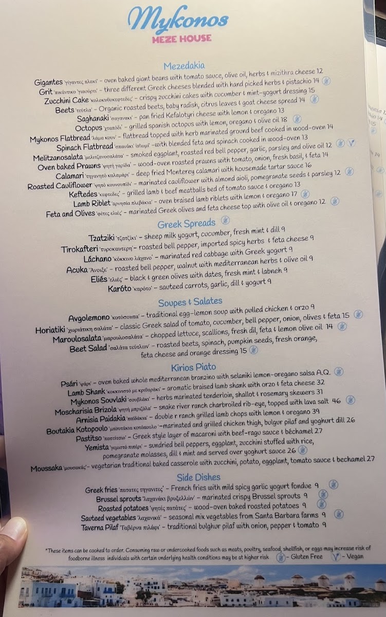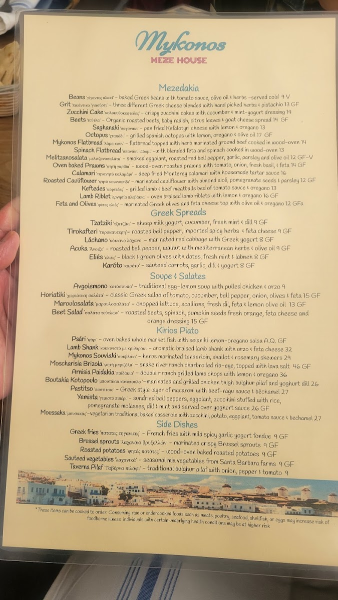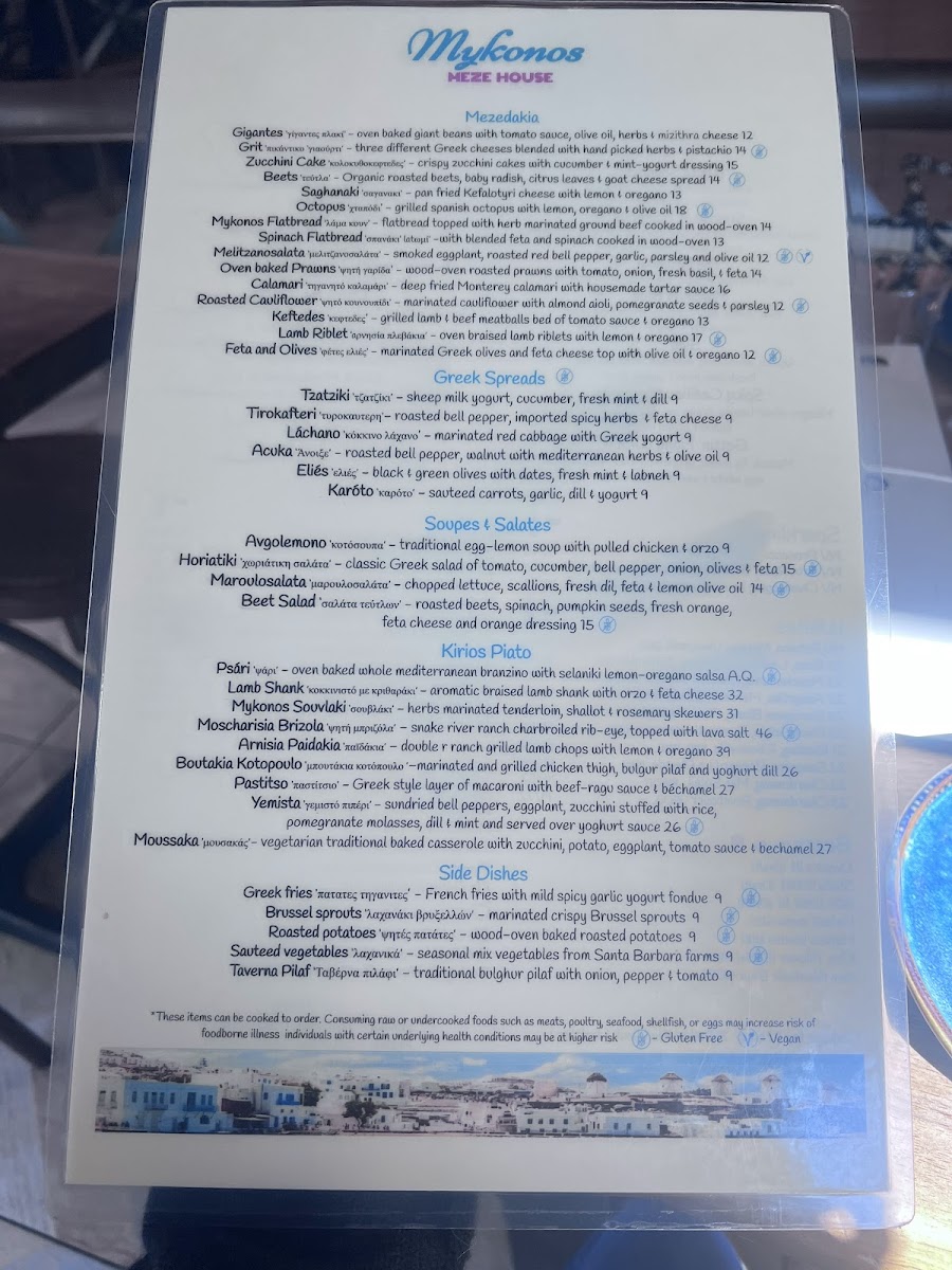 The ambience at Mykonos is both inviting and romantic. With outdoor seating equipped with portable gas lamps, diners can enjoy their meals under the stars, perfect for those balmy California evenings. Guests have raved about the attention to detail in service, with reviews highlighting the staff's friendliness and their capacity to create a welcoming environment. As noted by a satisfied customer, “The staff were very friendly overall… The octopus was tender and perfectly cooked.”