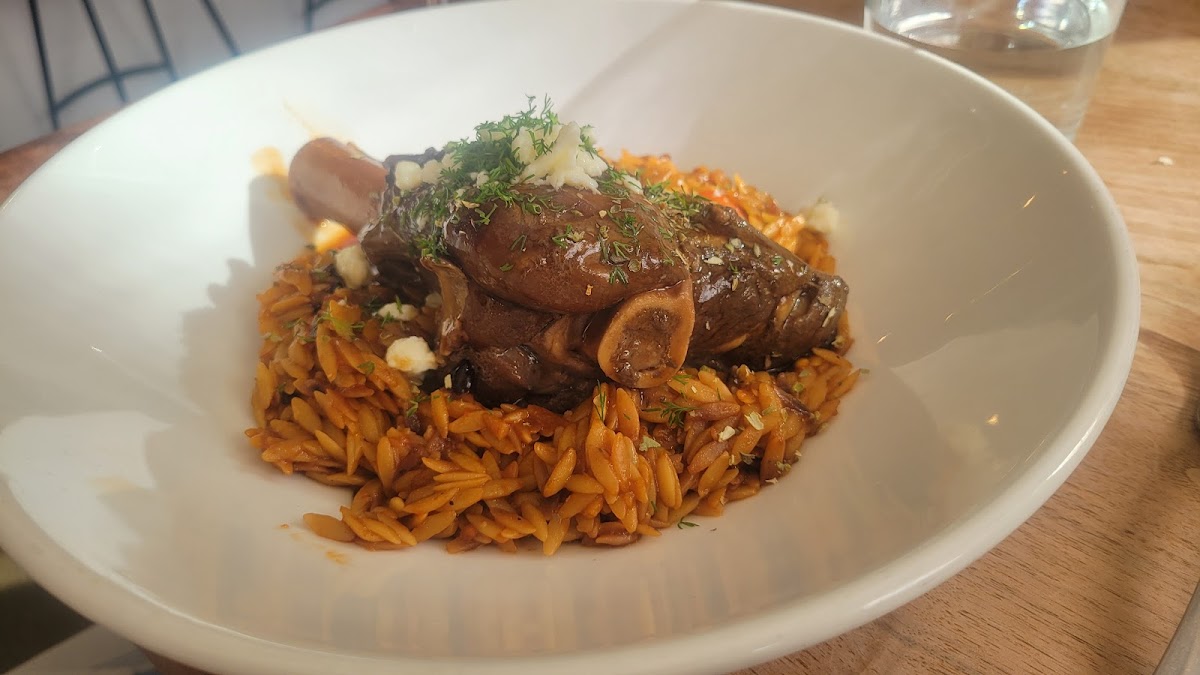 For a heartier option, dive into the Kirios Piato selections, including the Traditional Moussaka, a luscious baked meat casserole layered with eggplant and béchamel, or the Fisherman’s Pasta that boasts a medley of fresh seafood in a sumptuous fish broth for $31.00. One of the standout dishes is the Aromatic Braised Lamb Shank, served alongside orzo and topped with feta, perfectly embodying the rich flavors of Greece for just $32.00.